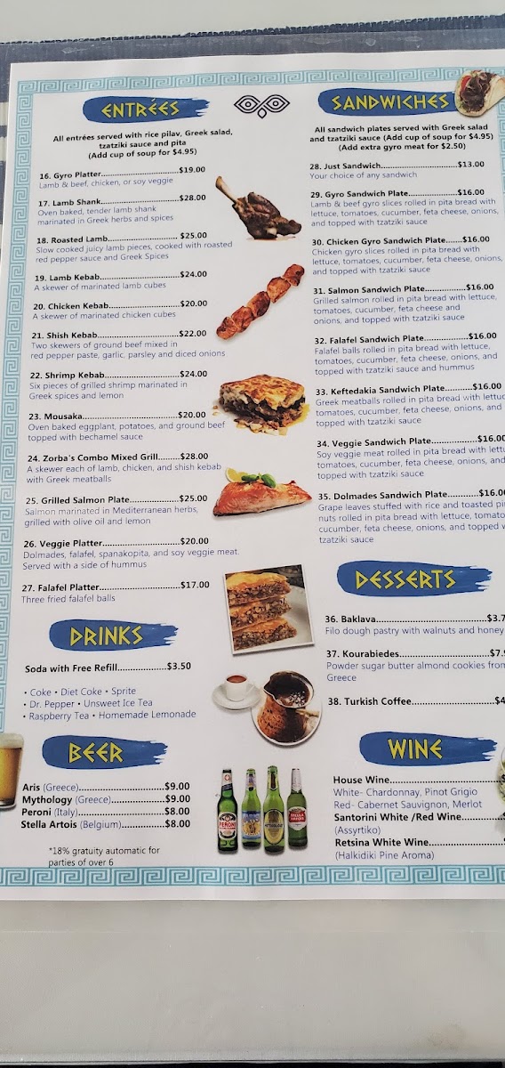 As you walk through the doors, the aroma of seasoned meats and fresh herbs greets you, promising a satisfying dining experience. The interior, adorned with classy Greek styling, exudes a warm and inviting atmosphere perfect for family gatherings, date nights, or a quick meal between activities. Customers have praised the friendly service that isn’t overbearing, providing just the right pace to savor your food and company.